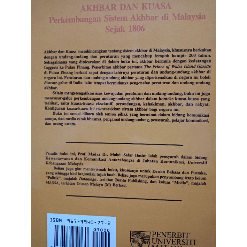 ZBH. Akhbar dan Kuasa: perkembangan sistem akhbar di Malaysia